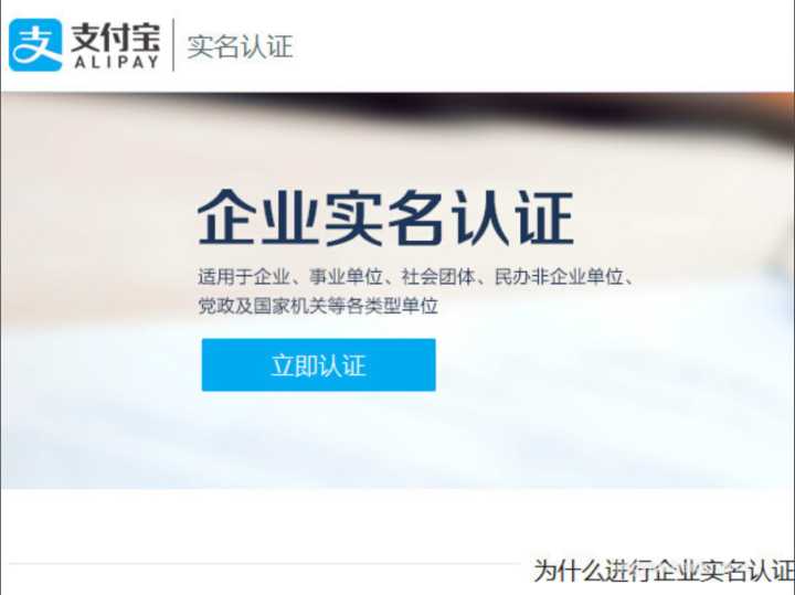 5、按照上一步的提示,进入企业认证。果断选择立刻认证。
