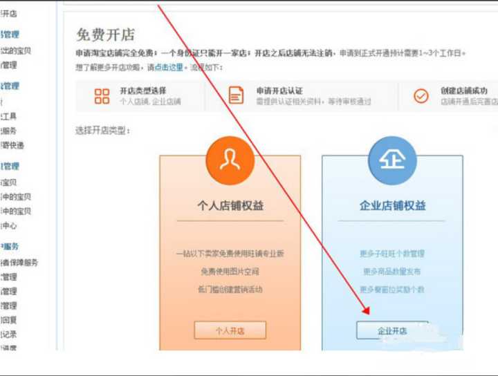 10、信息全都完善了以后,进入卖家中心,如果没有开店的账户,刚进入卖家中心会显示如图的界面,直接选择企业开店即可。后面就是八仙过海,各显神通了。