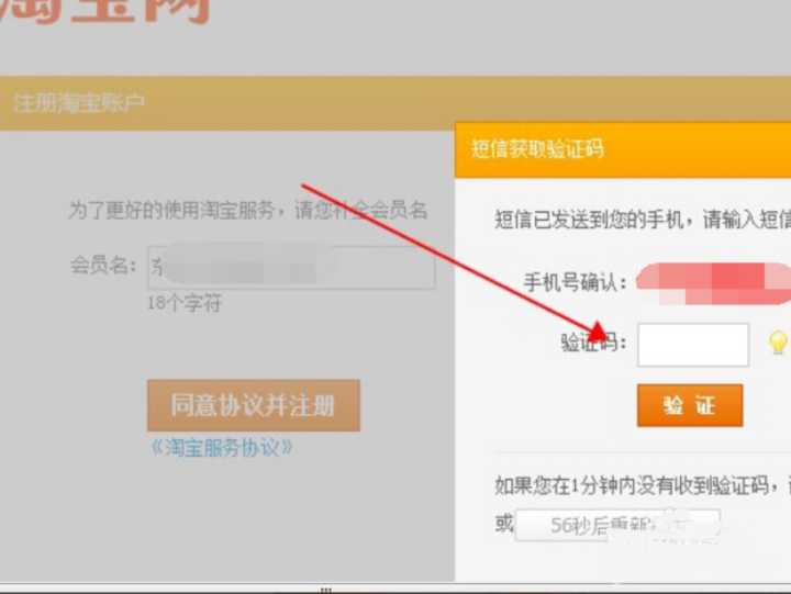 ]1、登录淘宝网,点免费注册,填写会员名、密码、验证码