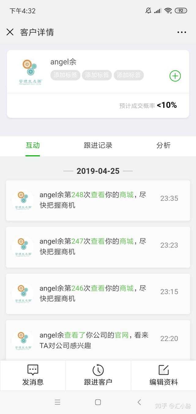 在之后的时间里,可以看到余总在反复查看汇小脉公司的商场、官网等,这就说明她对汇小脉文章内的种草是非常感兴趣的。
