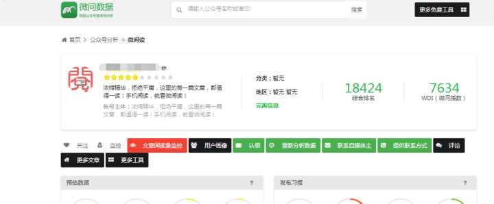 这样的数据就可以了,还能监控其阅读量。形成一个走势。判断这个号的质量。存在刷阅读的情况。微问数据_微信公众号分析可以去看一下。