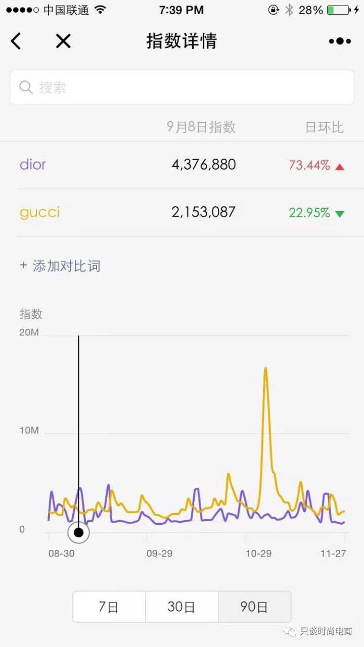 如果换成Dior,我们会发现,搜索最多的是口红。这说明通过一贯的宣传,围巾和口红已经成为明星品类。