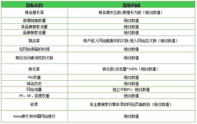 上面6个表格是对目前主流的一些网络营销方式评价指标的列举, 细心的朋友发现,除了对各个指标进行解释外,有的指标我们标出了绝对数值和相对数值,这样做是为以后给数据筛选分类做准备。