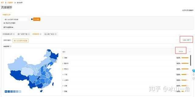 这里设置好后,我们再设置投放地域,打开直通车的流量解析。