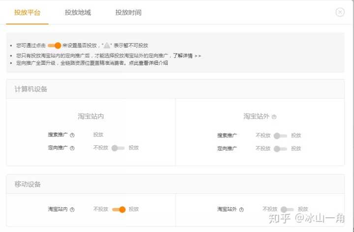 平台设置:我们只投放移动端站内,计算机端不投放,定向推广也关掉,站外也不用投放。