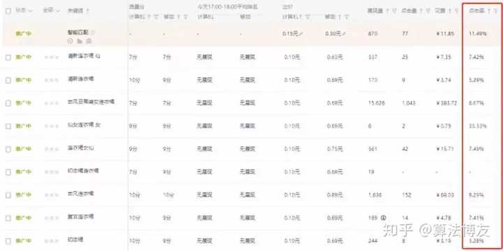 (1)高点击率关键词可以提升计划权重。