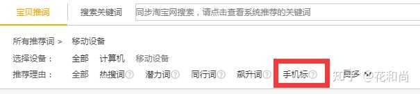 在呈现的目录中可以看到很多直通车的关键词,首先我们要选择一个带手机标的关键词,在整个淘宝无线端的流量占比额已经上升到80%以上,选择带手机标的关键词至少让我们的宝贝质量得分在6分以上,更符合无线端用户群搜索习惯,投放效果也会更好。