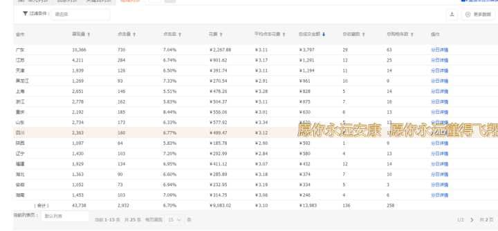 收藏购物车率高,点击转化率高,首先要做到关键词精准和人群精准,其次要做到地域精准,我们要曝光给一些地域,转化率高的地域,不能把曝光浪费在没转化或者转化很弱的地域。我们在报表,直通车报表里选择我们推广的计划,找到地域列表,看数据成交额,购物车,收藏这些数据。
