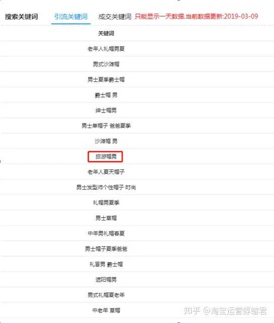 这个是这款帽子的进店引流关键词,大家看一下,前二十名的关键词只有旅游,但是但是没有出游。