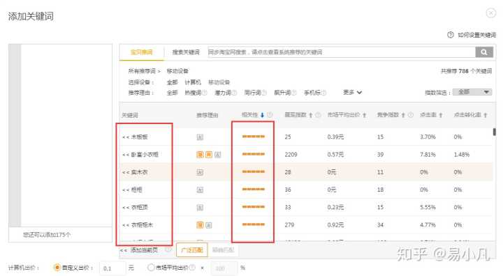 上图可以看到在添加关键词的时候,系统会推荐给我们很多这种广泛词,相关度都是100%,数量很多,同时搜索量非常大,说明这些词有非常多得人搜索,有搜索就有需求,有需求就有市场,买家不会无缘无故去搜索这些关键词,我们需要的就是抓住这部分需求,这么大的搜索量能给店铺宝贝带来很大的展现机会,提高曝光量。
