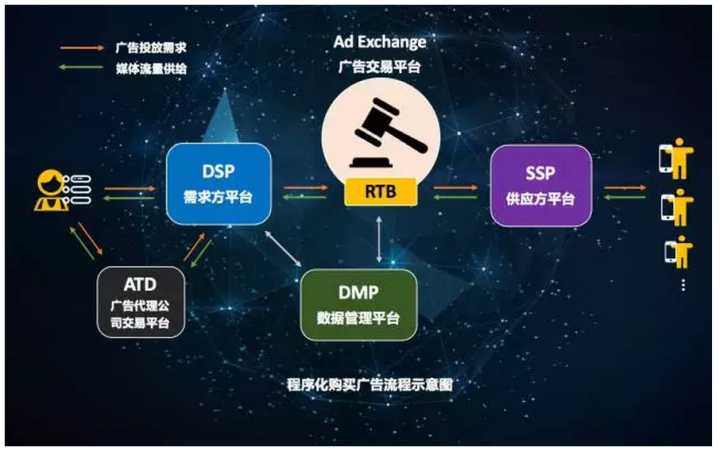 4、DSP(Demand-Side Platform,需求方平台):需求方平台允许广告客户和广告机构更方便地访问,以及更有效地购买广告库存。就是在RTB实时竞价环节中的程序化买家系统,用炒股软件来类比就很容易理解了,DSP是一个“程序化购买广告”的工具,广告主运用这个工具达成“精准”购买及投放广告并持续优化后续效果的目标。