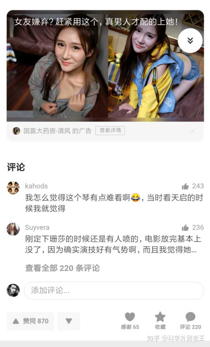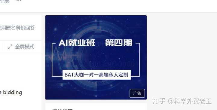 知乎已经完成了广告精准投放了,我之前无聊搜索,java培训,考研。分半年时间,考研是最近才搜索的,立马就会换成考研机构的广告。厉害的不行。广告算法可是很复杂的。