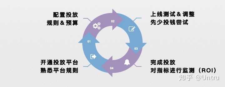 5. 上线反馈&测试&持续优化产品上线之后需要时刻跟进每个流量源的表现情况(品牌类广告忽略),排除质量(次日留存,七日留存,用户购买付费率等KPI)表现极差的;如果排除完了,尝试新的流量源;再不行就得思考是不是推广的产品自身的设计问题了。