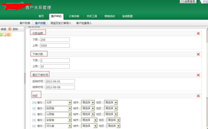 通过CRM工具帅选出购买力较强的老顾客。由于是冬装,现在是10月份,肯定是必须进行地域性的选择,老顾客至少是有2次购买的,消费金额是200以上的,而且最近是有过购买的非休眠顾客。于是就有了这个顾客模型。