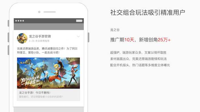• 手游人群精准定向,历史MORPG人群及未注册人群重定向