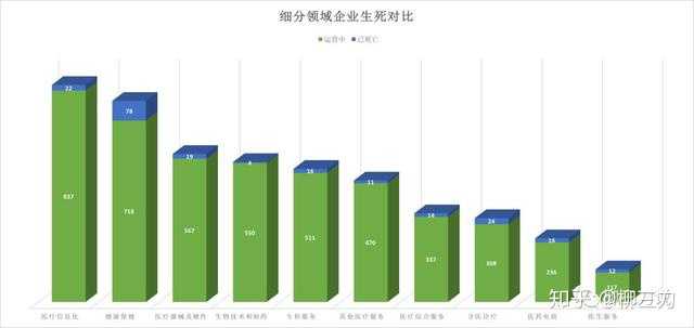 另外上表也能看出,技术门槛较高的细分领域存活率更高,如生物技术制药、专科服务、医疗信息化等。