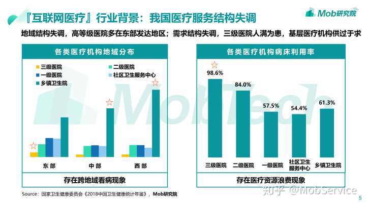 其次,中国医疗资源配置极度不合理,让本来就稀缺的医疗资源更加匮乏。在我国,看病难、看病贵等问题长期无法解决,“等候三小时看病三分钟”成为常态,受制于顶层设计、医保联网欠缺以及分级诊疗制度不合理,分级诊疗制度始终难以落地。优质医疗资源被“小病”占据,而基层医疗资源却被闲置(患者只信任三甲医院)。这些低效率运行的问题也为互联网解决方案提供了发展的空间。