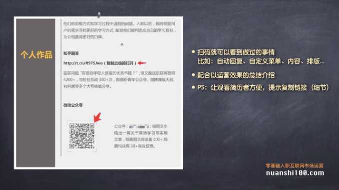 运营一个属于自己的公众号、知乎账号,增加粉丝数、文章阅读量、点赞数……积累这些数据,面试的时候给HR看。证明我是一个会做自媒体的人。