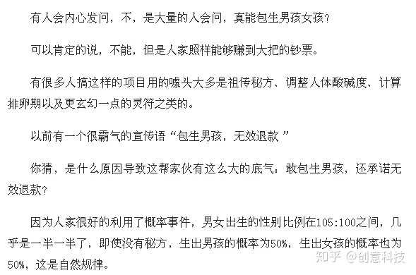 他们以为生下男孩来,是这些老中医或者神棍们的功劳,岂知这根本就是自然而然的规律罢了。