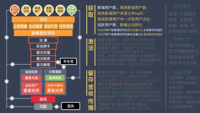 说了这么多,当然没有最重要的指标!关注什么指标应该是在运营环节中不断变化的!譬如产品上线初期,最重要的是验证目标用户,找到种子用户,做用户画像,甚至加联系方式逐个去聊都是可行的。如果做的是付费产品,上线初期就要分析网页orAPP哪一步造成最多的用户流失,尽快优化。成熟期可能是自增长的速度,如果自增长的速度放缓,是否考虑横向拓宽产品线等。这些必须在实操中培养数据的敏感度,所以说运营是个讲灵敏和经验的岗位,从来没有一块狗皮膏药可以哪儿痛贴哪的,有的话那肯定是骗子。