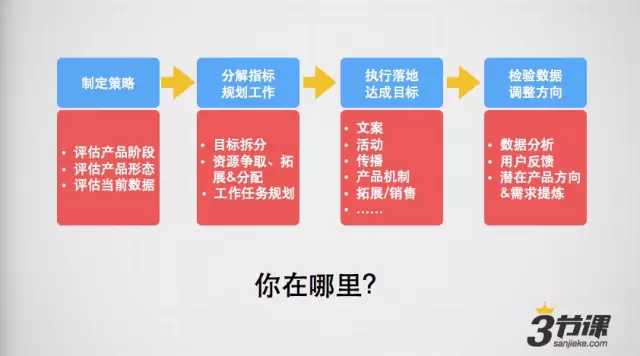 第一,制定策略。在这个环节,我们可能需要先根据产品形态,产品当前所处的阶段,以及当前一些核心相关数据上面的表现,来制定我们的运营策略。