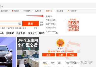 登陆淘宝首页以后右上角卖家中心,然后找到【免费开店】。