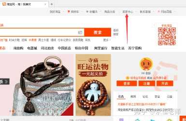 进入淘宝网首页,登录注册好的账号,然后点击右上角“卖家中心-免费开店”,有