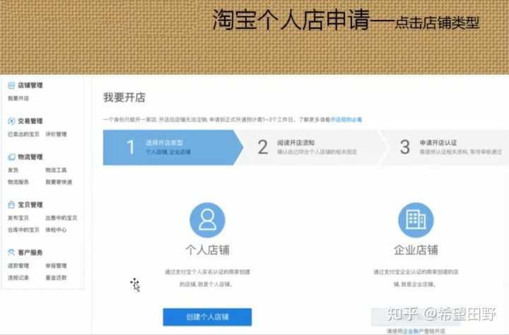 个人店铺和企业店铺两个选择。