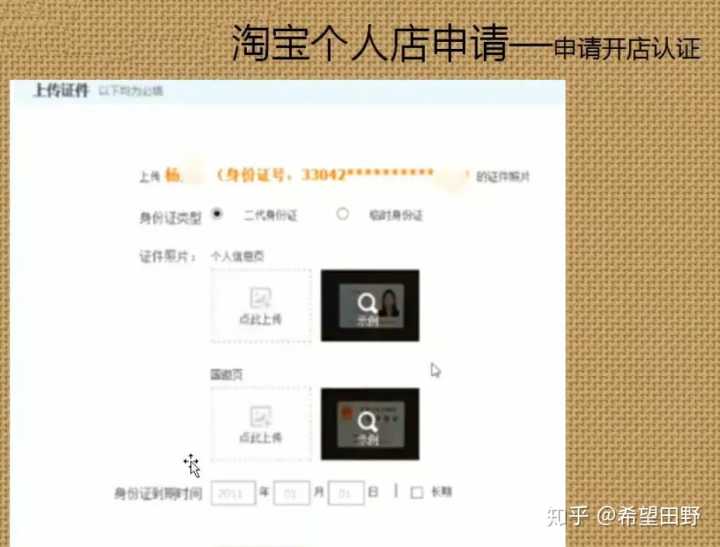 进入下一步后会看到如下图这样的页面,请务必严格按照淘宝的认证规则填写上传姓名、身份证号、手持身份证的照片、半身照。