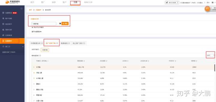 直通车里面的流量解析也是可以提供大家去选词的,我们通过展现指数,点击转化率,竞争度,去选择和我们产品相匹配的词。