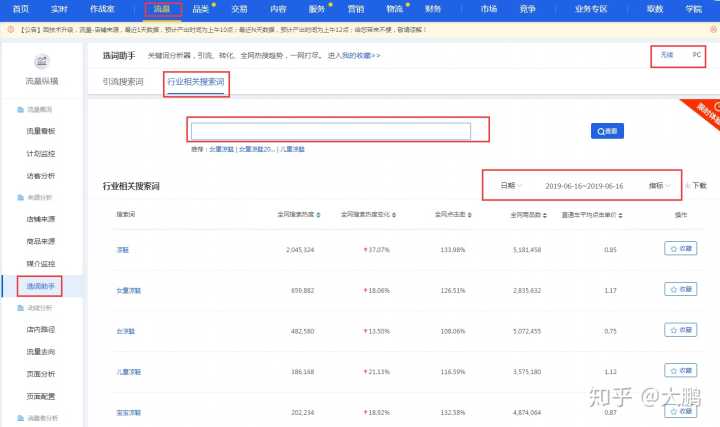 生意参谋中的选词助手可以查看相关搜索词,功能是十分强大的,可以查看;全网搜索热度、全网搜索热度变化、全网点击率、全网商品数、直通车平均点击单价。生意参谋中的行业排行可以查看“热门搜索词”“飙升搜索词”在热门搜索中可以查看搜索词的搜索人气、搜索词的点击率、点击人气、支付转化率、直通车参考价格等,在飙升搜索词中可以查看搜索词的点击率、点击人气等。
