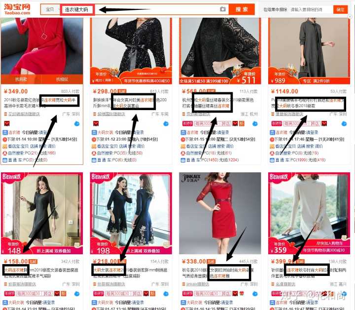 第一点:首先淘宝得检测到你产品标题中含有买家所搜索的这个关键词。(比如:“连衣裙 大码”)