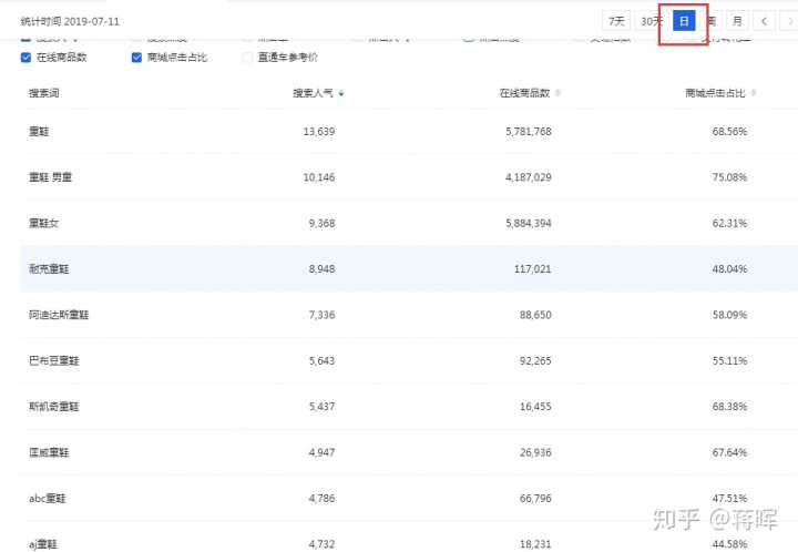 通过“生意参谋-市场-搜索分析”,输入“童鞋”,然后按照搜索排名,注意这里是一天的数据。(会更加精准)