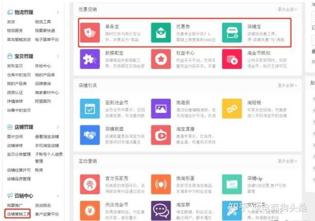 这里建议使用官方工具,打开路径:店铺卖家中心-营销中心-店铺营销工具。