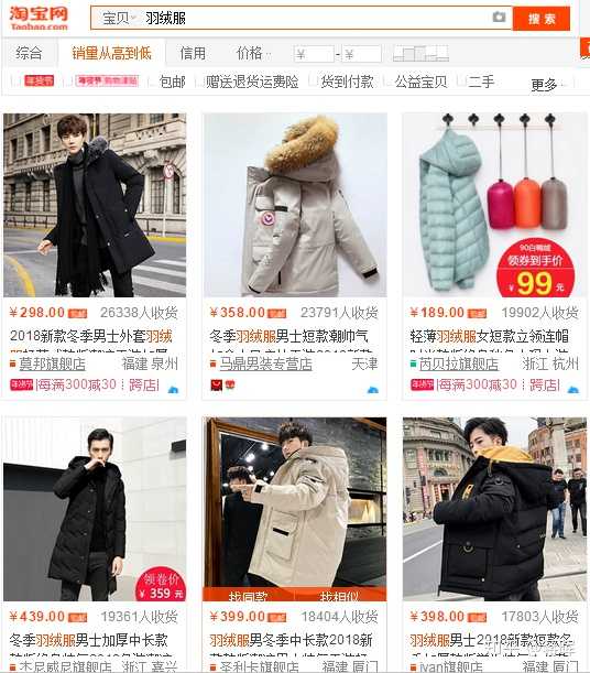 比如你想要卖衣服,就拿“羽绒服”为例吧,我们首先要来分析下到它底有没有市场。
