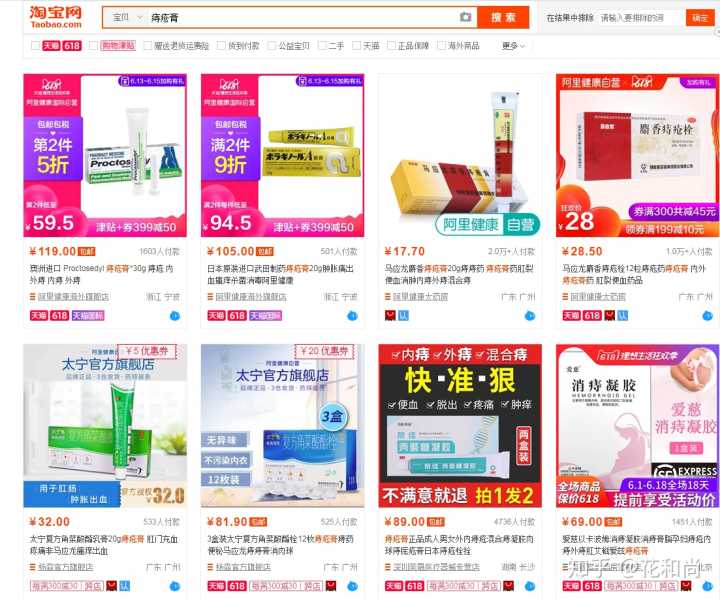 接下来,把关键词“痔疮膏”放入淘宝中搜索,