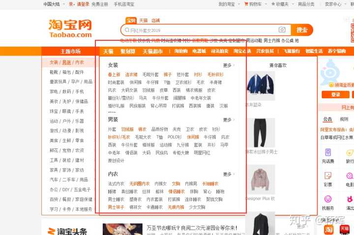 方法一在淘宝电脑端首页找到主题市场,其中有很多一级类目,点到一级类目右侧会出现更加细分的二级类目。