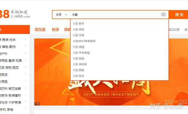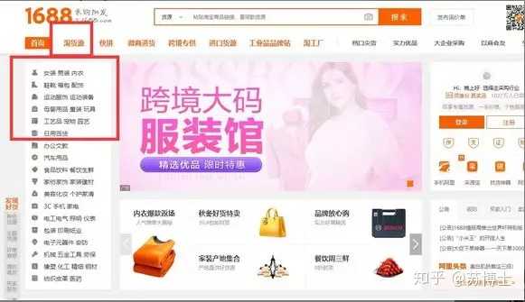其次是要靠谱。阿里巴巴首页有红色框、淘货源、包括下面的类目等。我们先点击淘宝源,以女装类目为例。