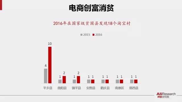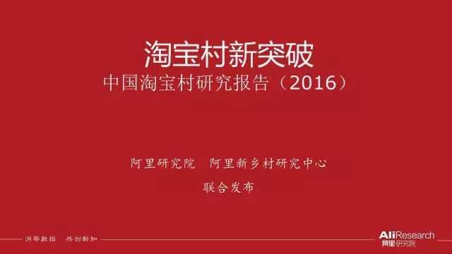 2016年10月29-30日,以“新乡村、新经济”为主题的第四届中国淘宝村高峰论坛在江苏沭阳隆重举办。来自地方政府、淘宝村、高校、电商企业等1000余人共聚一堂,共同探讨“互联网如何改变中国乡村”。会上,阿里研究院和阿里新乡村研究中心共同发布了《中国淘宝村研究报告(2016)》,通过以下33张PPT了解这份报告——