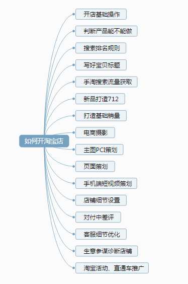 先思考一下一位新手开淘宝店需要做哪些工作?(下图是列出的一些主要工作,要做的事非常多)。