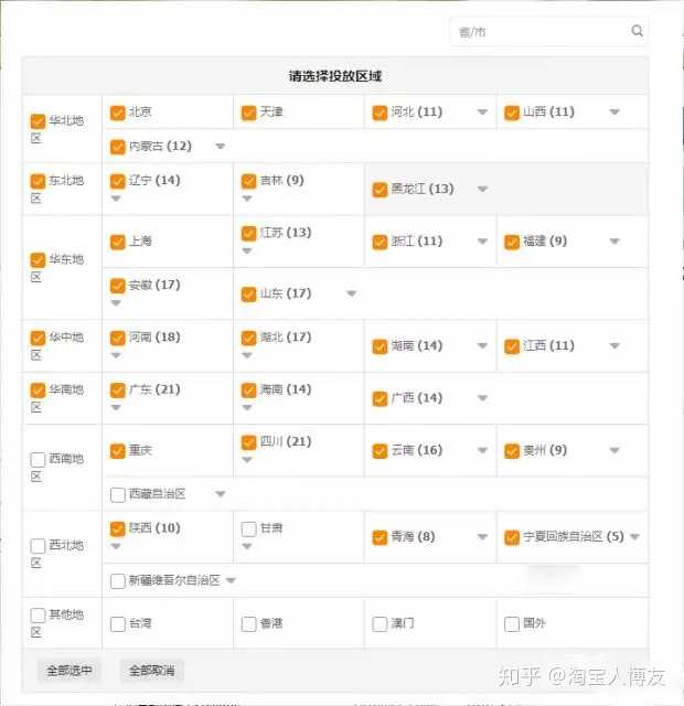时令影响较大的宝贝可以选择性只投放几个地域。