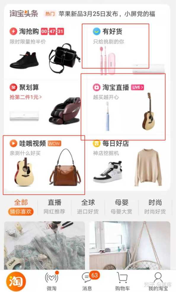 手淘首页流量到底指的是什么,官方的定义是这样的:手淘首页指的是访客通过手淘客户端的首页产品,除广告banner位,每日好店产品,其他可以直接进入您店铺页面或商品详情页的入口。从定义上理解,就是指通过手机端的淘宝首页上的所有入口,除开那些已经存在的细分入口外的流量,都归入手淘首页,而且最主要的流量入口来源就是猜你喜欢 。