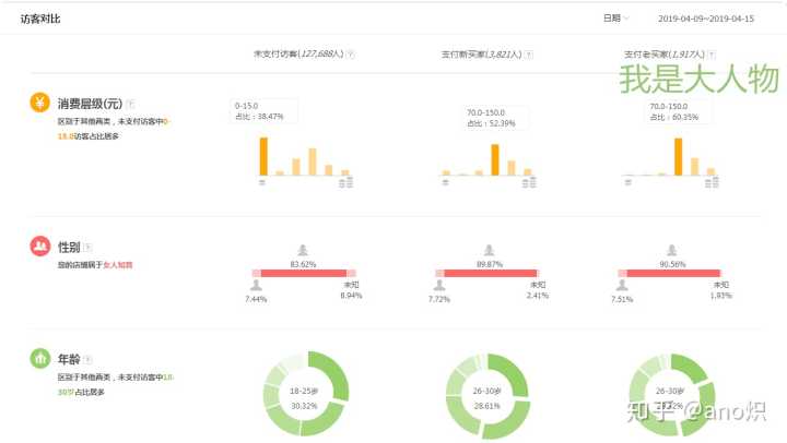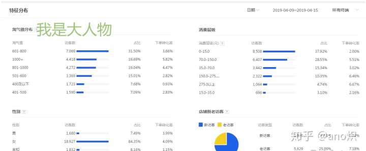 这张图可以看到店铺的人群特征,淘气值、消费层级、性别占比、老客户占比。