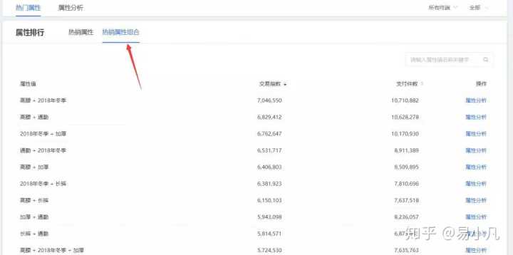 在属性分析中,你可以根据自己的实际情况选择组合属性,然后在属性趋势下有一个热门榜单,从热门榜单中,你可以了解到你是和谁在竞争,他们每天的销量有多少,和这些宝贝比,你是否有自己的竞争优势。