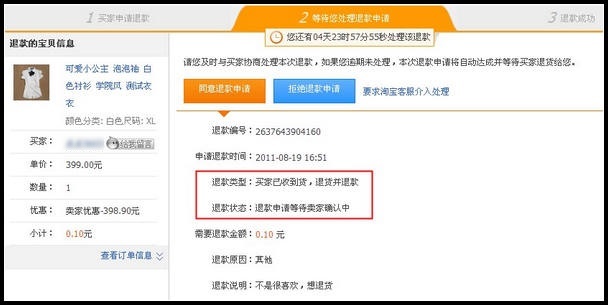 2、若买家进行了退货退款的申请