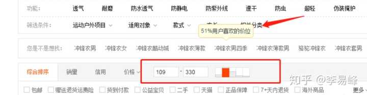 做任何产品,定价永远是最敏感的一部分。消费者通常会把价格和价值划等号。同类目里的产品会有很多价位段的相同产品,每个价位段有不同的竞争环境,并不是在一个环境下。好在淘宝把价位段已经分割开来,方便我们去查看各价位段的商家情况,销量情况和产品情况。