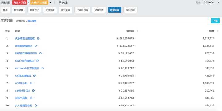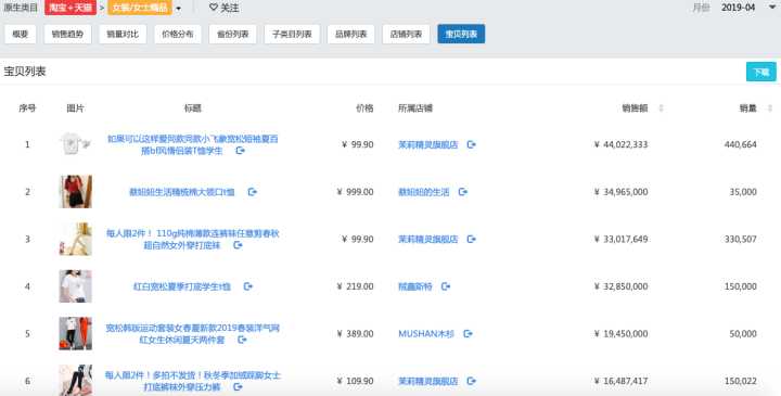 3、商品数据 :商品销量、库存、价格数据都要很清楚的