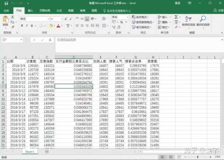 数据是有格式的,时间维度是【年月】,本案例的时间粒度是【日期】,计时单位不同,格式也不同。【年月】字段是文本格式,【日期】字段是日期格式,格式不同处理的方式就不同。我们现在拿到的数据集是【日期】格式,以(天)为单位统计的观测值。这种以时间为单位的观测值,在分析的时候,可以灵活改变观测的时间度量。