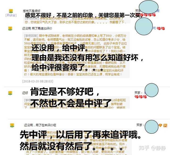 2.无理取闹的中差评,未经沟通直接给的中差评。我也从不求人打电话发短信赔钱从来没有过的事儿。之前看心情会旺旺联系了解下原因,现在都是直接拉黑,禁止下次购买。PS经常觉得自己不适合淘宝,太傲娇哈哈。