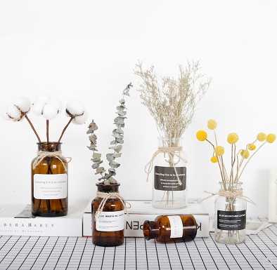 讲真看到这个的时候我觉得我混乱的房间有救了,北欧风格,最为优秀的点在于,有31种花花草草可以提供选择,都是真花的干花,品类有:干棉花、尤加利叶、黄金球、满天星、桔梗、月季玫瑰,足够搭配出无数不一样的风格。一回家,这样清新淡雅的透明花瓶映入眼帘,十分减压,心情也变得愉快起来。